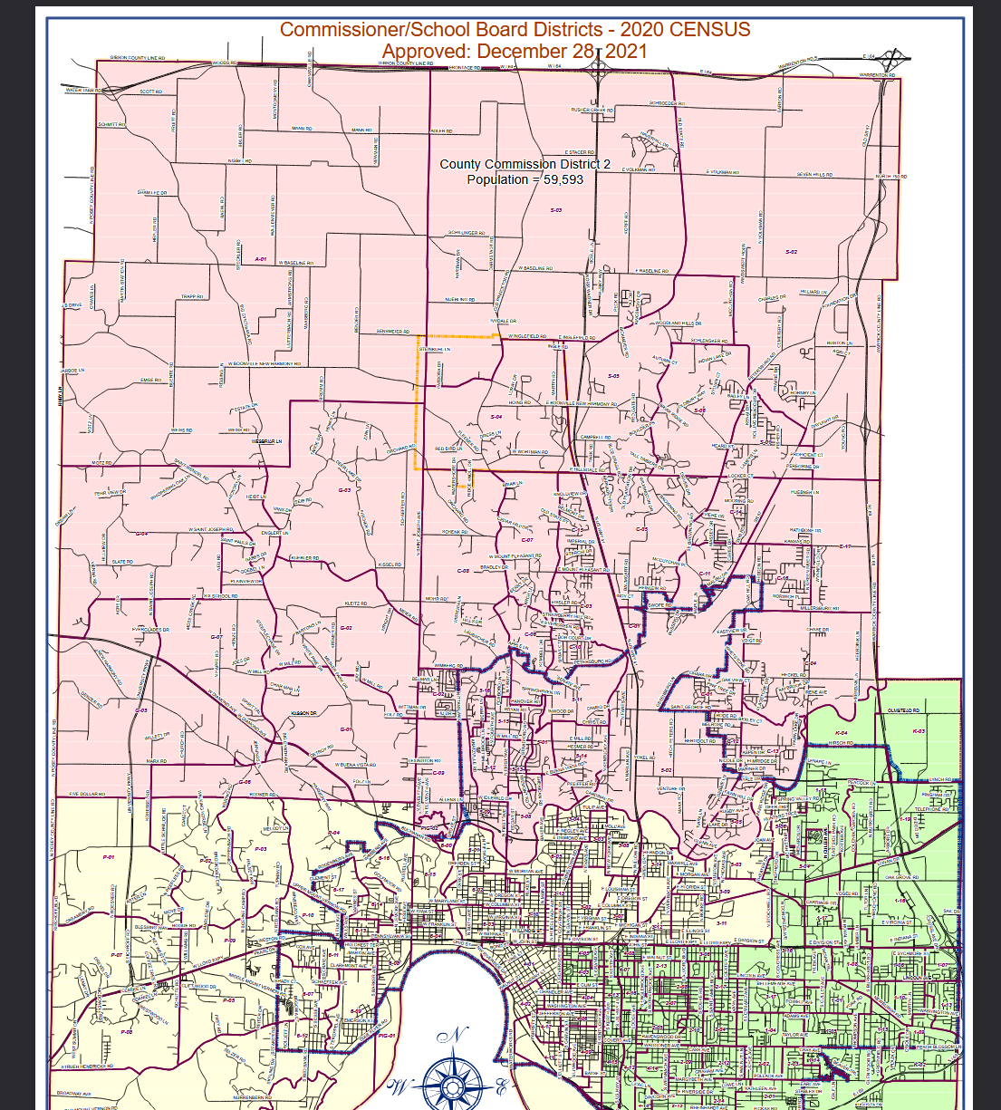 The Commissioner District up for election in 2026 is District 2, seen below in red. While the candidate must reside in this district, they will run countywide.